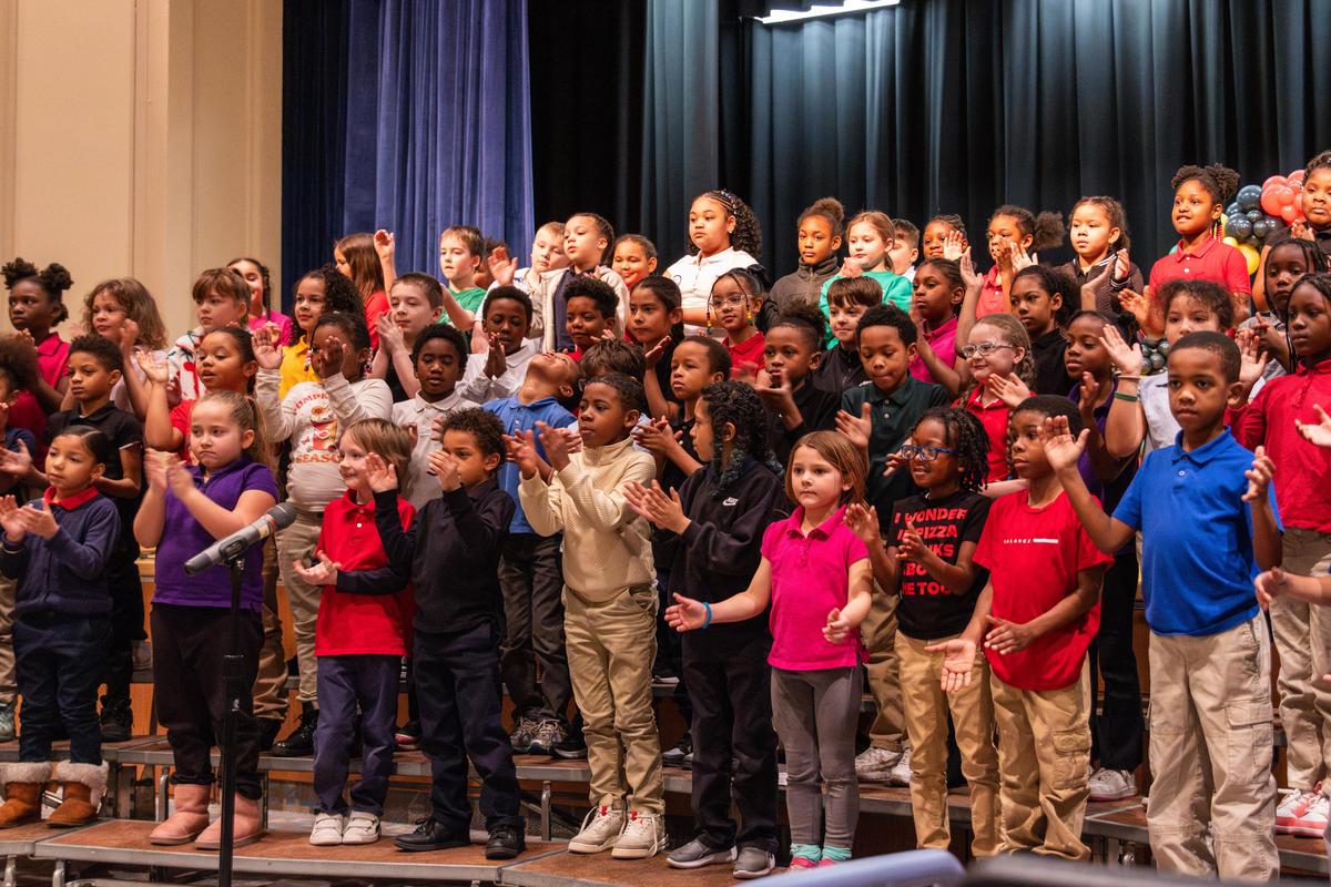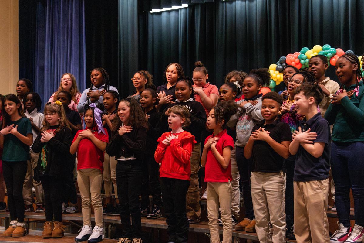 First grade sang the folks song “Traveling in the Wilderness,” which relays brief stories about figures like Harriet Tubman, Frederick Douglas, Rosa Parks, and more. Second grade performed Bill Withers’ classic ode to friendship and community, “Lean on Me.”